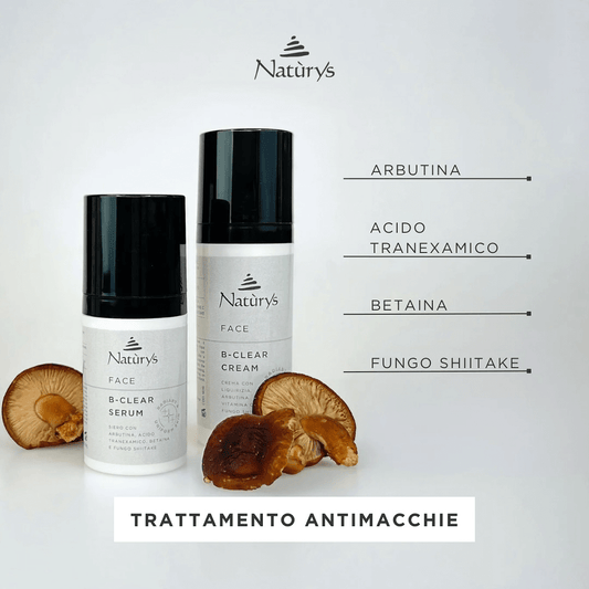 Produkto savybės Funkcija Slopina melanino pirmtakus Aktyvai Traneksamo rūgštis, Shiitake grybų ekstraktas Naudoti ☀️🌙 -